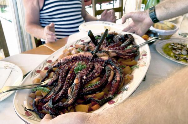 Auf der Insel Rab wird der Tintenfisch zusammen mit Möhren und Zwiebeln mehrere Stunden in heißer Kohlenglut geschmort ? so wird er unglaublich zart.